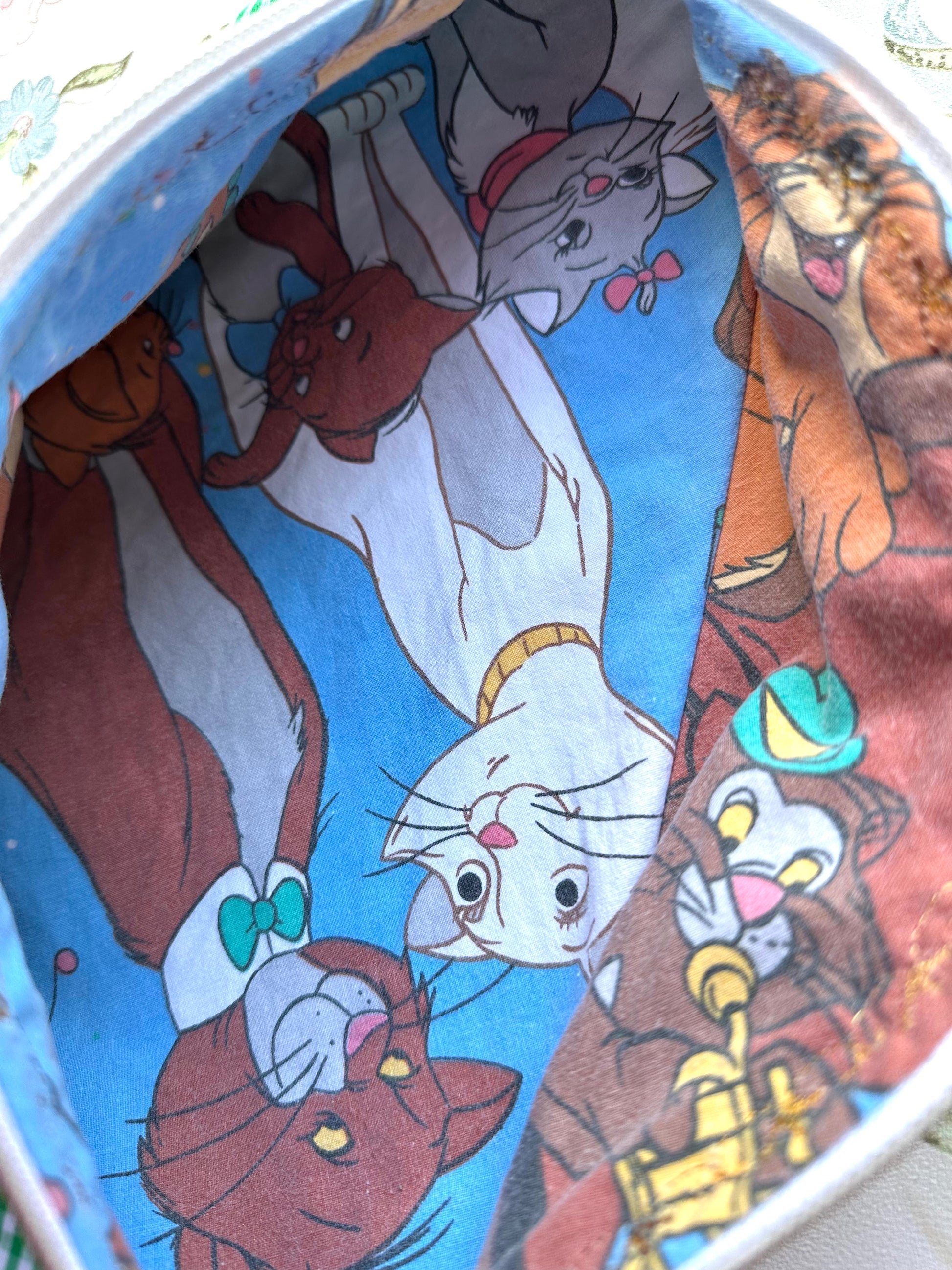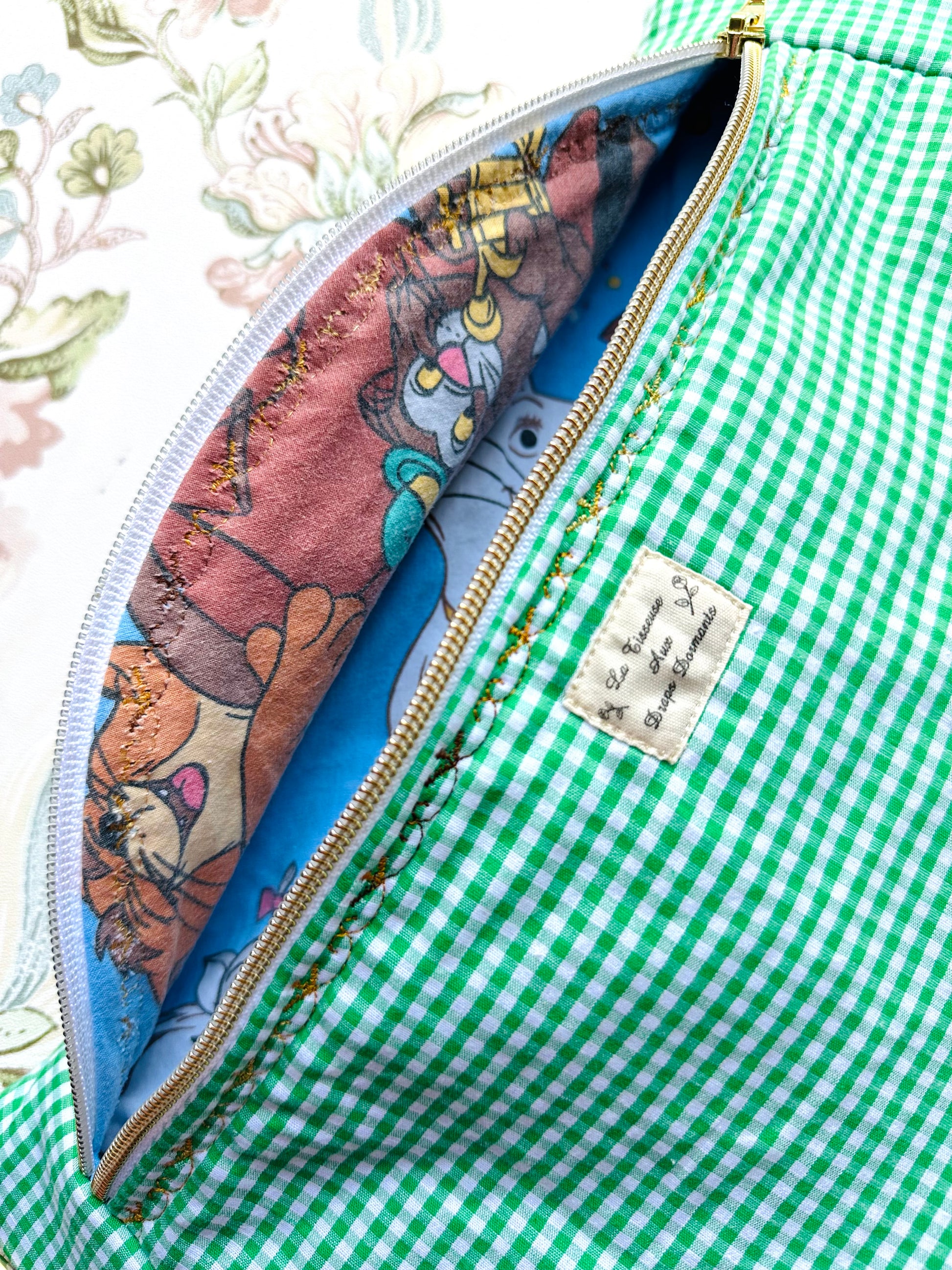 Tissu Vichy vert, avec doublure intérieure en tissu des Aristochats RARE.