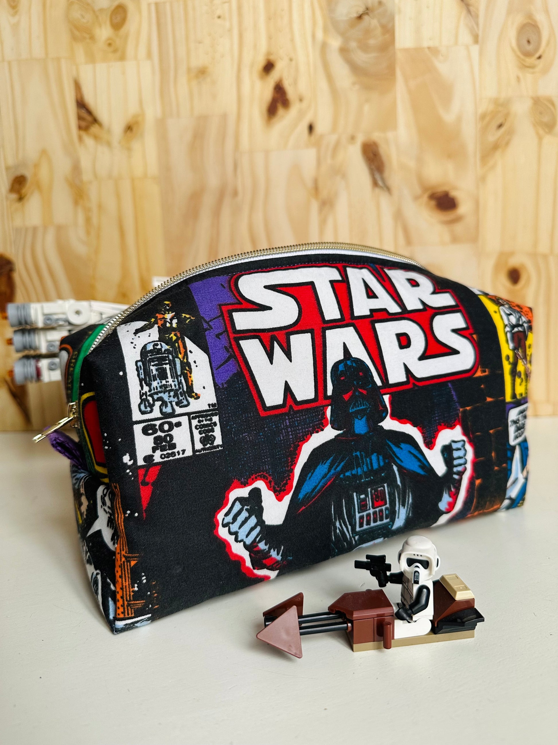 Tissu Rare Star Wars Comics Vintage avec doublure intérieure en coton mauve.
